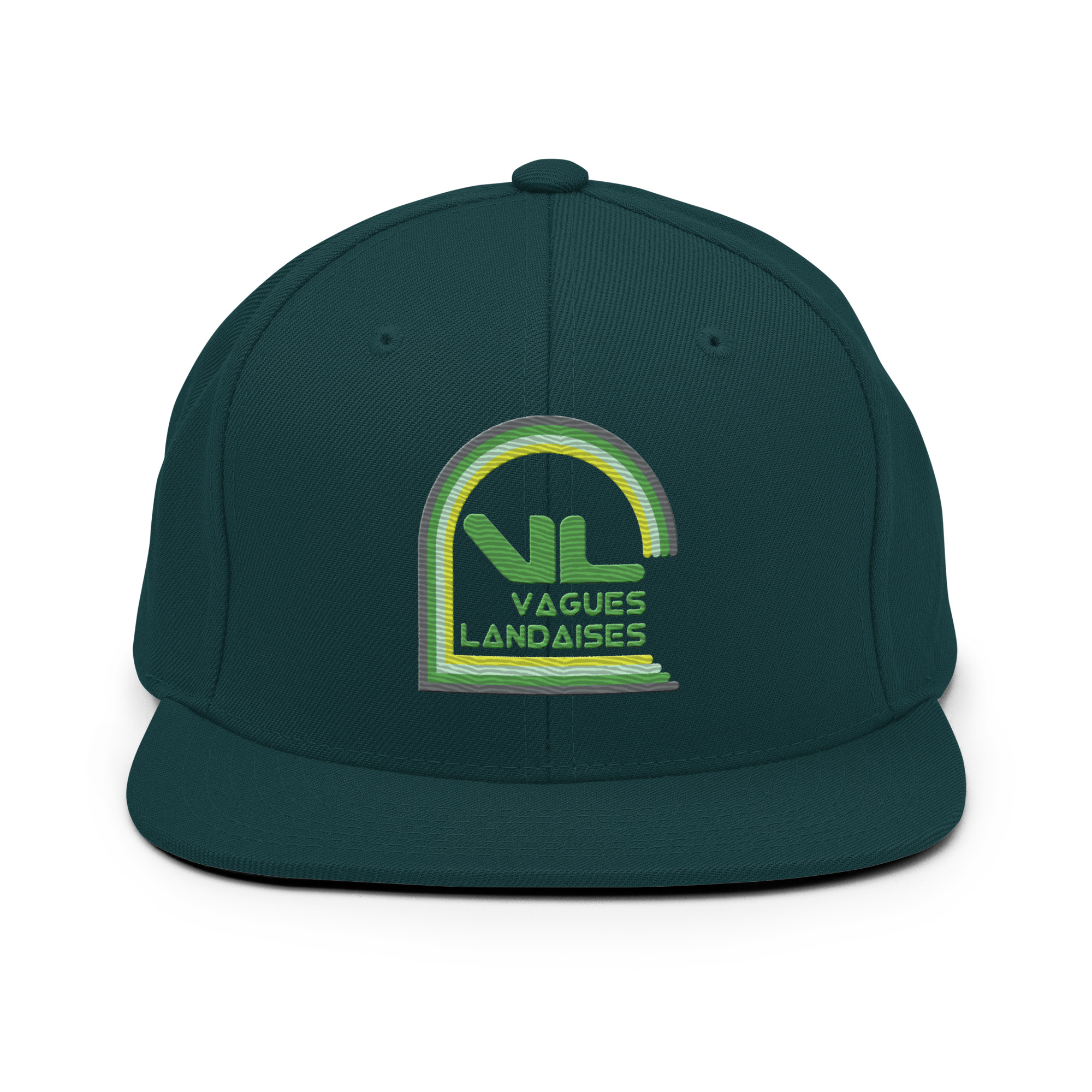 Cette casquette est structurée avec une coupe classique, un bord plat et en bougran. Le serrage réglable à pression en fait une casquette confortable.